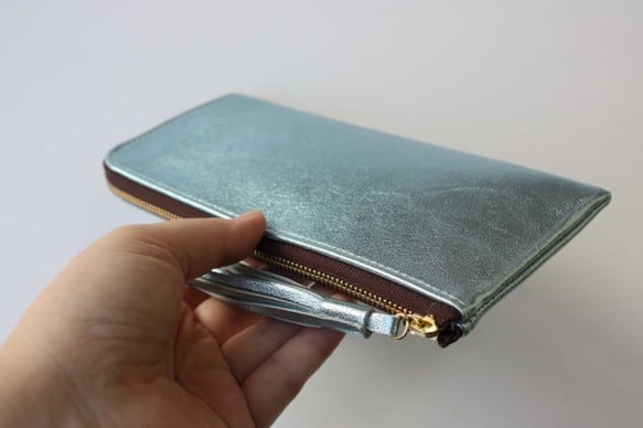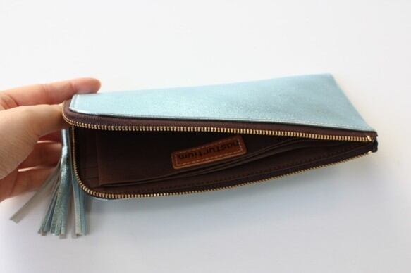 ゴートレザーのスリムな長財布 L字型 ライトブルー