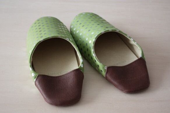 ピッグスキンのバブーシュ みずたま ライトグリーン(M)