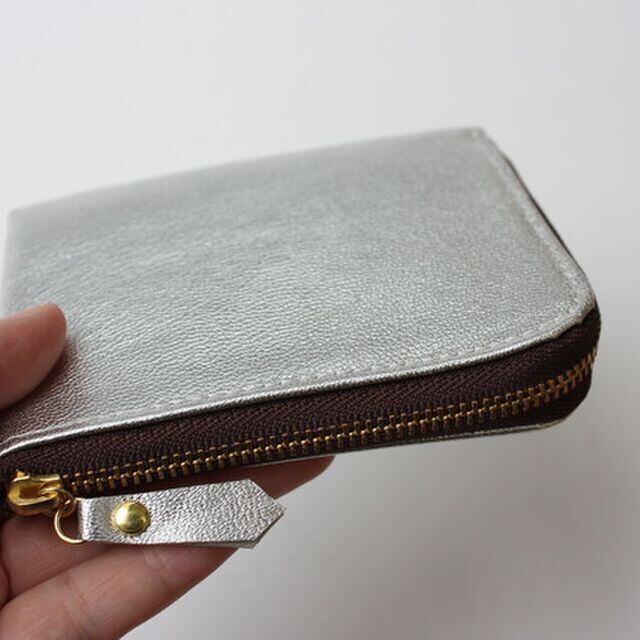 ゴートレザーのスリムなミニ財布 シルバー