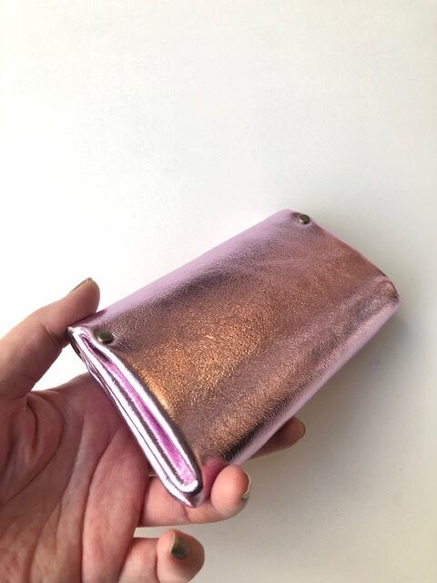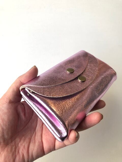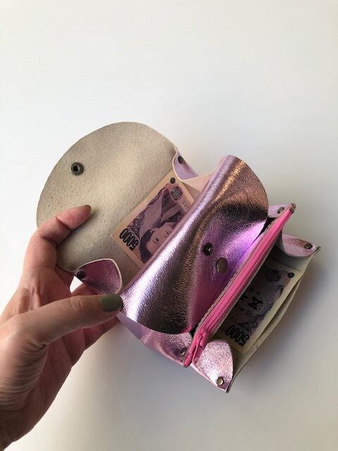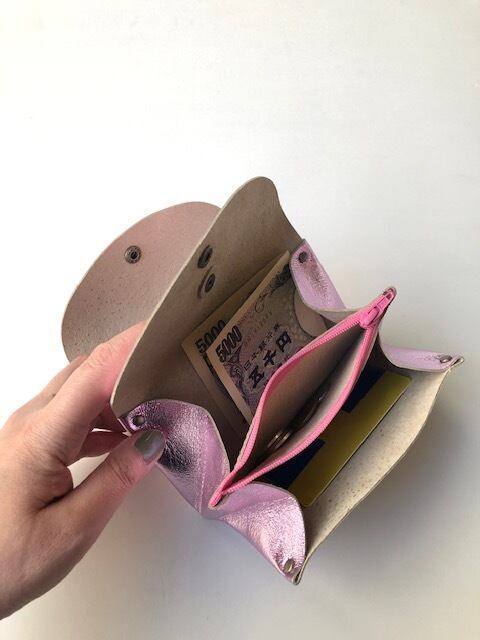 〇人気の小さなお財布の新色つくりました!キラキラ チェリーピンクの箔加工のピッグスキンです〇