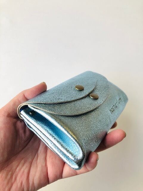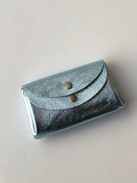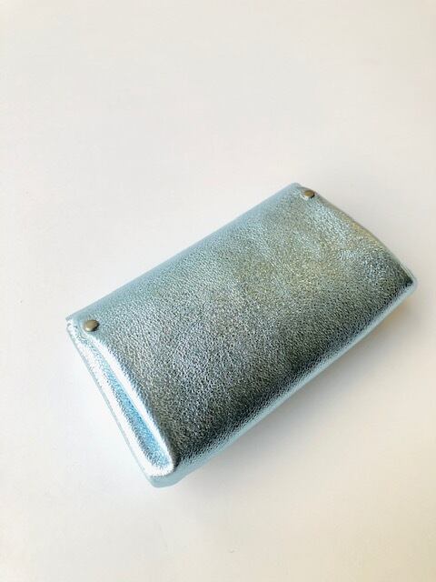 〇人気の小さなお財布の新色つくりました!キラキラ ライトブルーの箔加工のピッグスキンです〇
