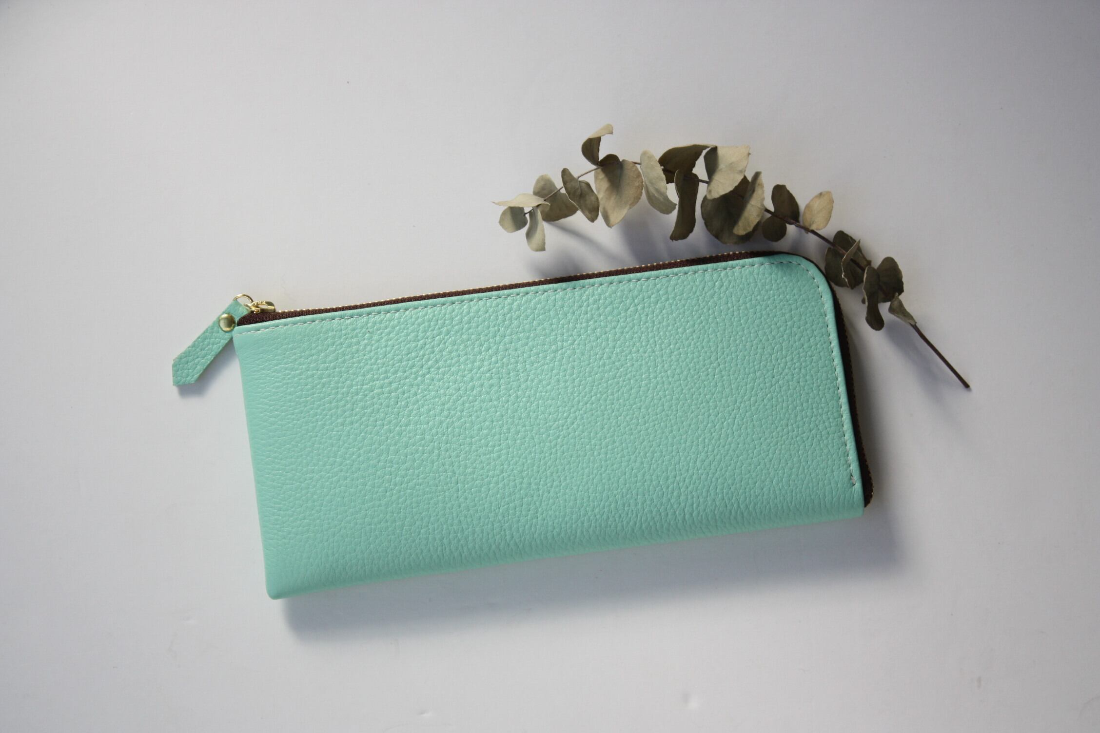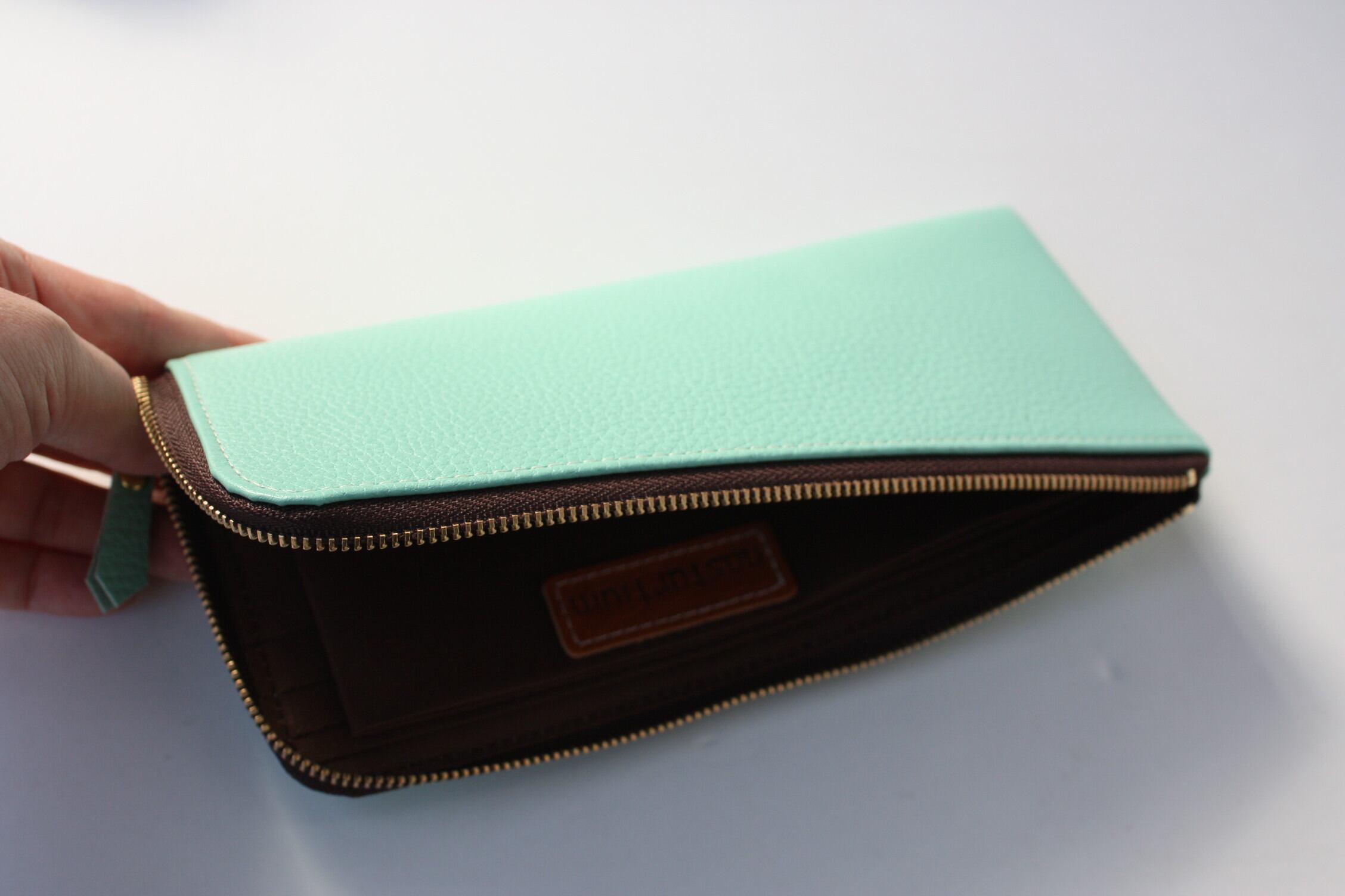 牛革のスリムな長財布 L字型 ミントグリーン