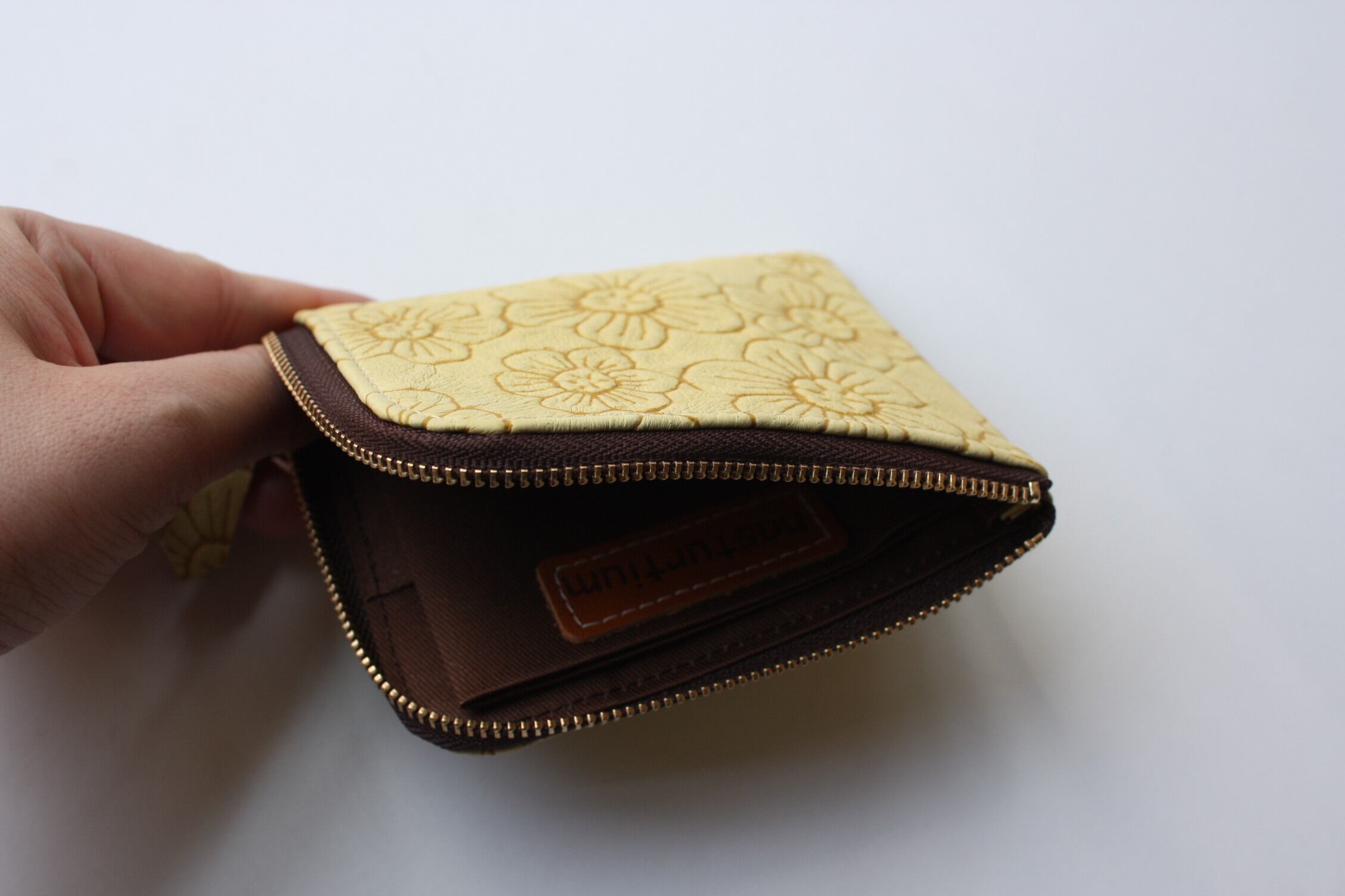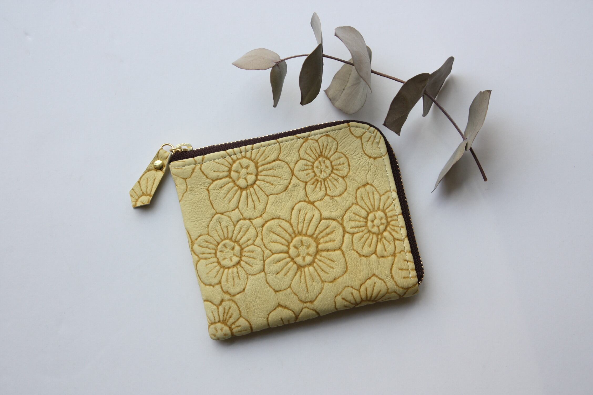 ピッグスキンのスリムなミニ財布 フラワー イエロー