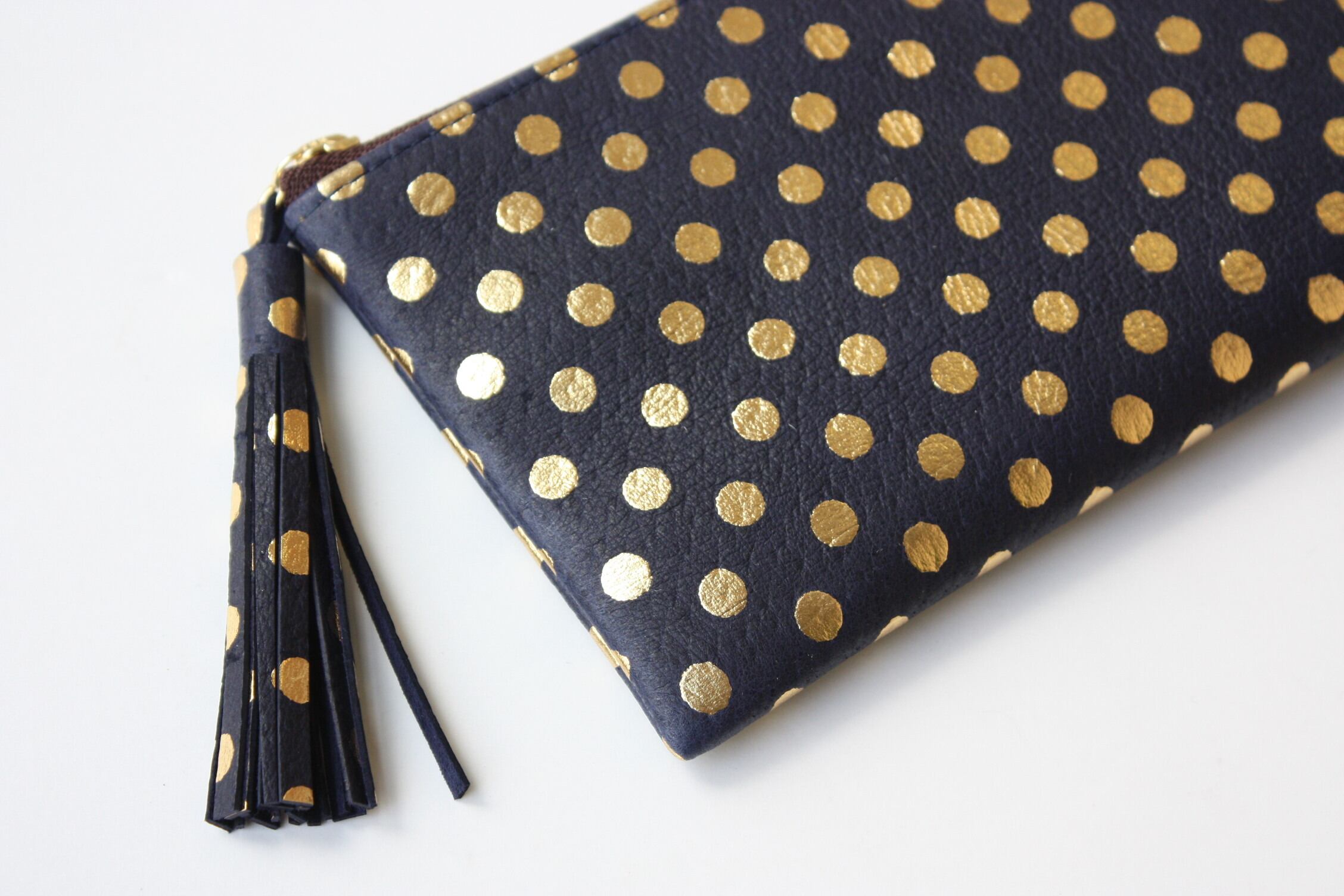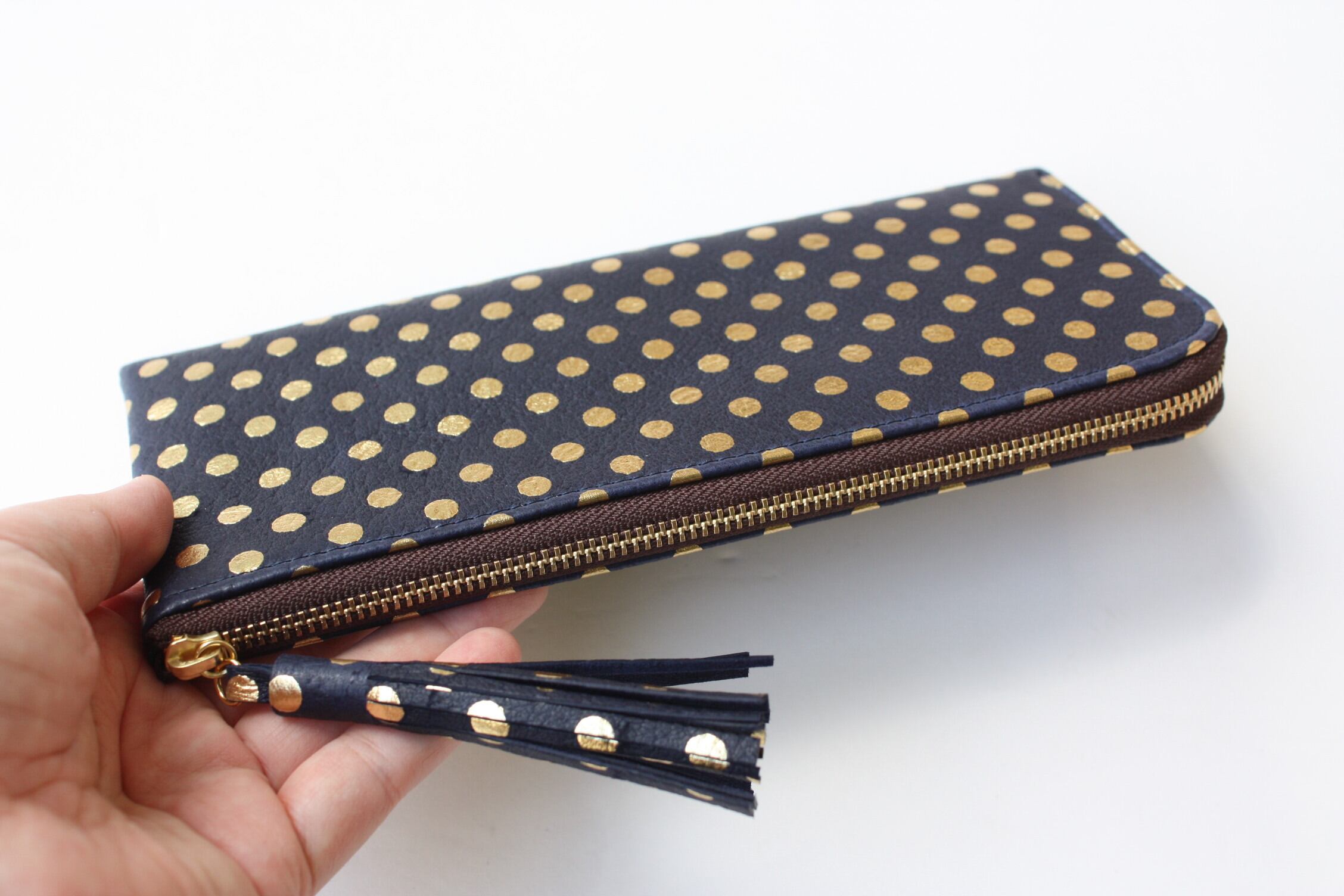 ピッグスキンのスリムな長財布 みずたまネイビー