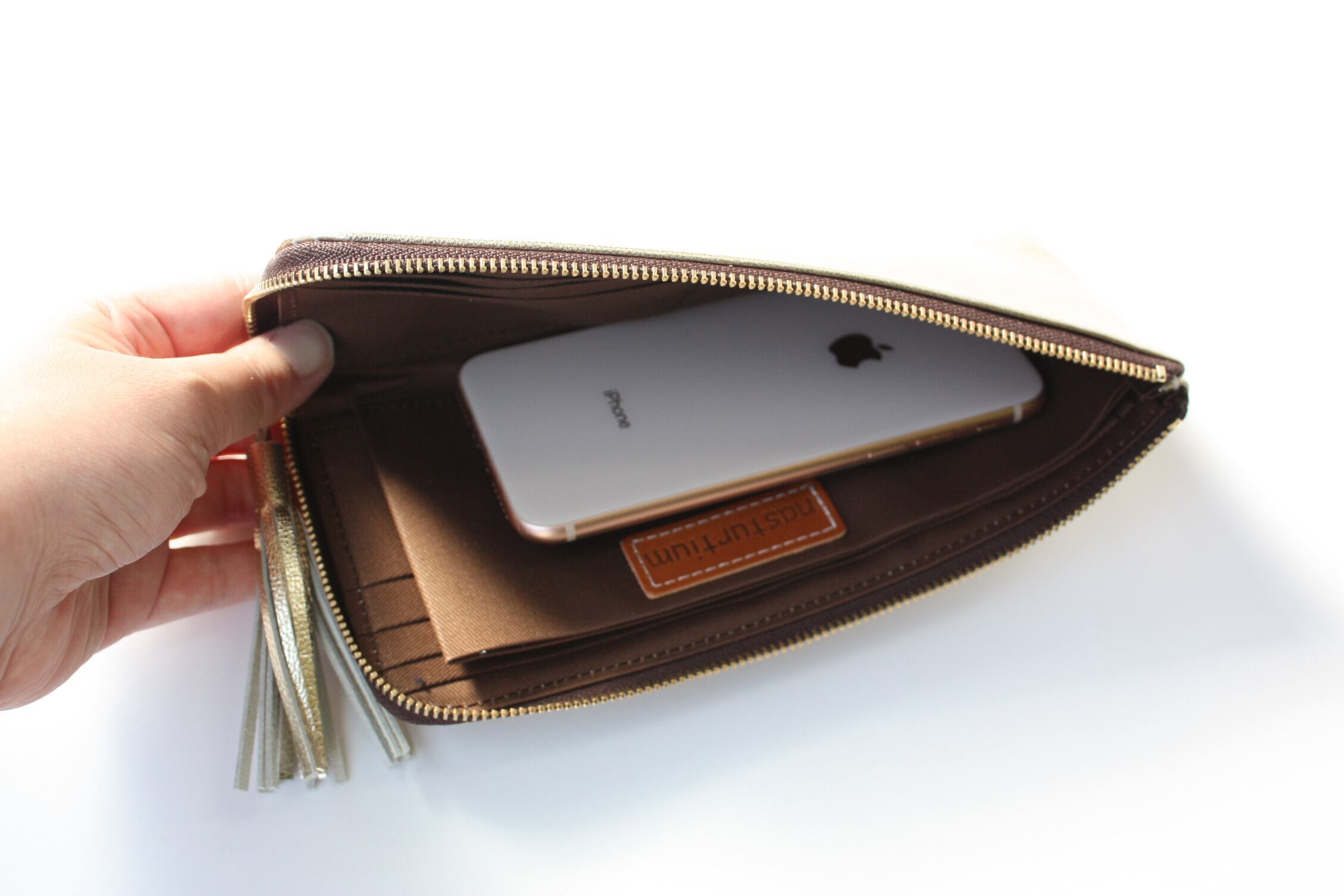 内側はブラウンの生地を使用しています。