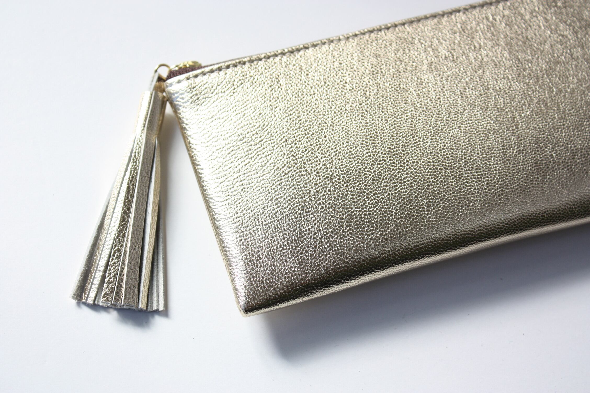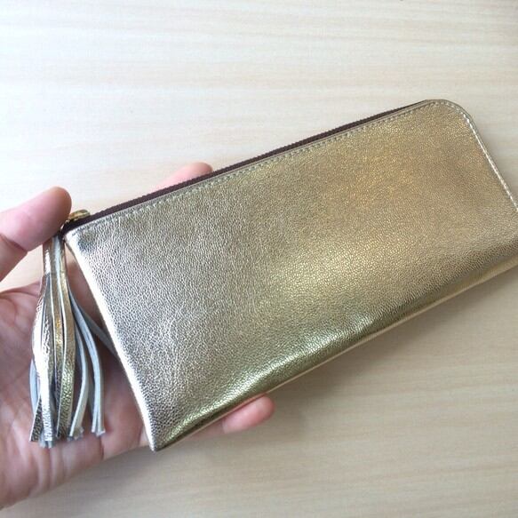 ゴートレザーのスリムな長財布 L字型 ライトゴールド